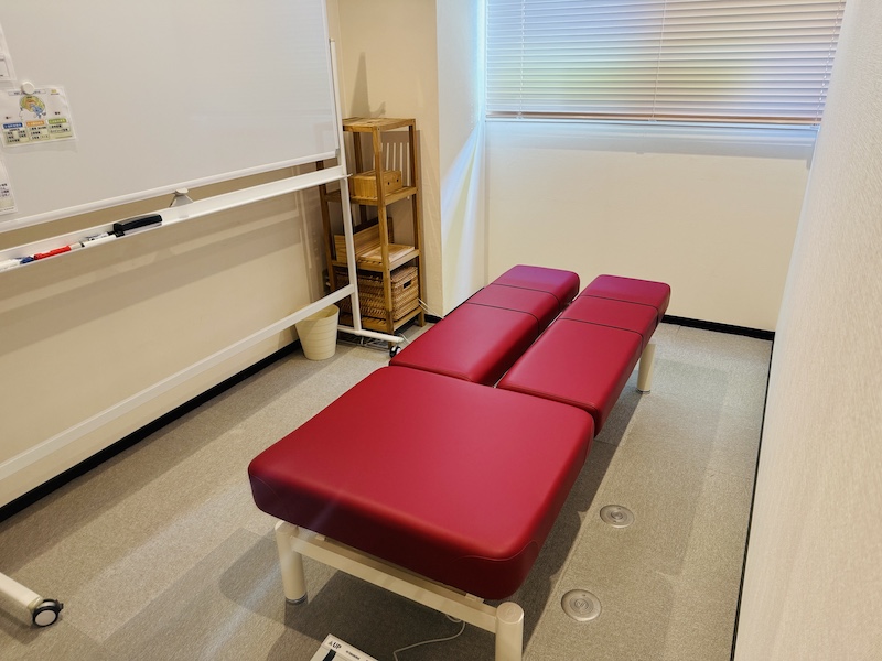 初回は姿勢の検査を実施いたしますので、スカートや裾の広がった服装でご来院の際はお着替えをお願いしております。ご自身でお持ちいただいても問題ありませんし、ジャージをご用意しております。